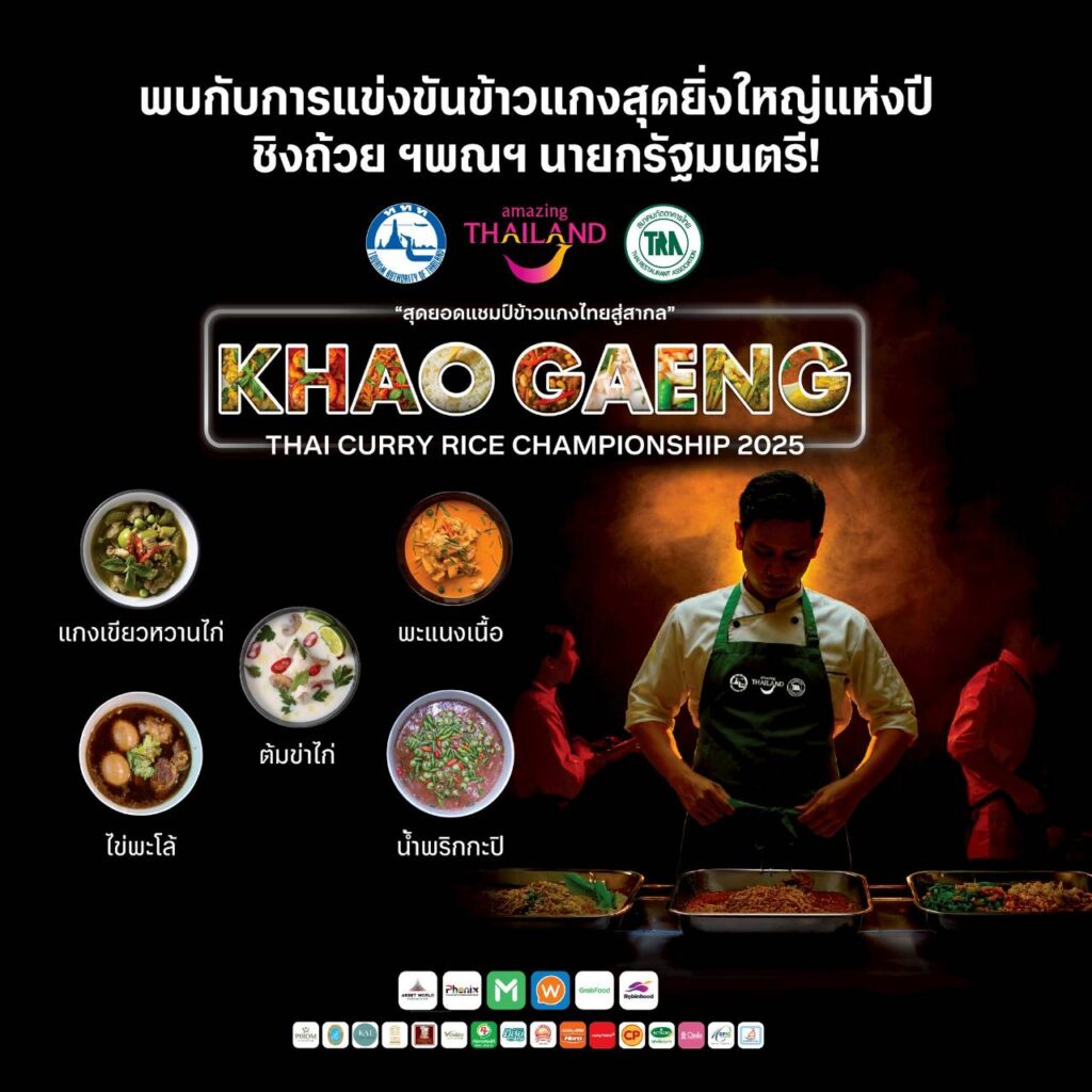 ททท.-สมาคมภัตตาคารไทยและพันธมิตร จัดยิ่งใหญ่การแข่งขัน “Khao Gaeng” Thai Curry Rice Championship 2025 วันที่ 17-19 ตุลาคม ณ Phenix ประตูน้ำ ชิงถ้วย ฯพณฯ นายกรัฐมนตรี พร้อมนำข้าวแกงไทยโกอินเตอร์และดันเป็นมรดกอาหารแห่งภูมิภาค พบกองทัพสินค้ามากมาย ราคาสุดช็อคขายไข่ใบละ 1 บาทจำนวน 1 หมื่นฟอง