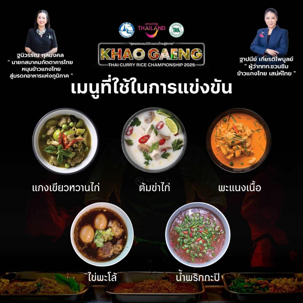 นางสาวฐาปนีย์ เกียรติไพบูลย์ ผู้ว่าการการท่องเที่ยวแห่งประเทศไทย (ททท.) กล่าวว่า ขอแสดงความยินดีกับผู้ได้รับรางวัลทุกท่าน ข้าวแกงนับเป็นเสน่ห์ของอาหารไทย ถ้ามาเมืองไทย ต้องมาชิมร้านข้าวแกงไทย ทั้งสามารถพบเจอได้ทุกที่ ตั้งแต่สตรีทฟู้ดไปจนถึงร้านหรูๆ ข้าวแกงของประเทศไทยนับว่าเป็นข้าวแกงที่อร่อยล้ำเลิศที่สุดไม่แพ้อาหารชาติใดในโลก โดยในปีนี้ไทยยังคว้าแชมป์ “ประเทศที่มีอาหารดีที่สุดในโลกประจำปี 2025” จากผลโหวตผู้อ่าน Condé Nast Traveler อีกด้วย
