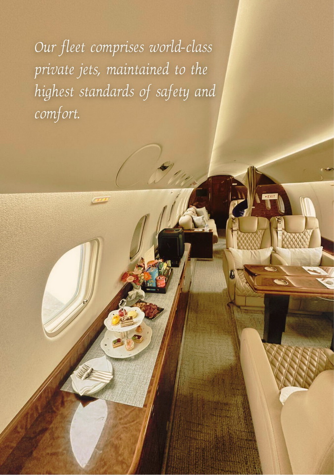บริษัทมุ่งมั่นสร้างมาตรฐานใหม่แห่งการเดินทางส่วนตัวแบบครบวงจร ตั้งแต่การวางแผนเส้นทางเฉพาะบุคคล ไปจนถึงบริการบนเครื่องบินที่ใส่ใจในทุกรายละเอียด ทั้งอาหาร เครื่องดื่ม และการบริการจากนักบินและลูกเรือมืออาชีพที่มีประสบการณ์ในเส้นทางทั้งในและต่างประเทศ