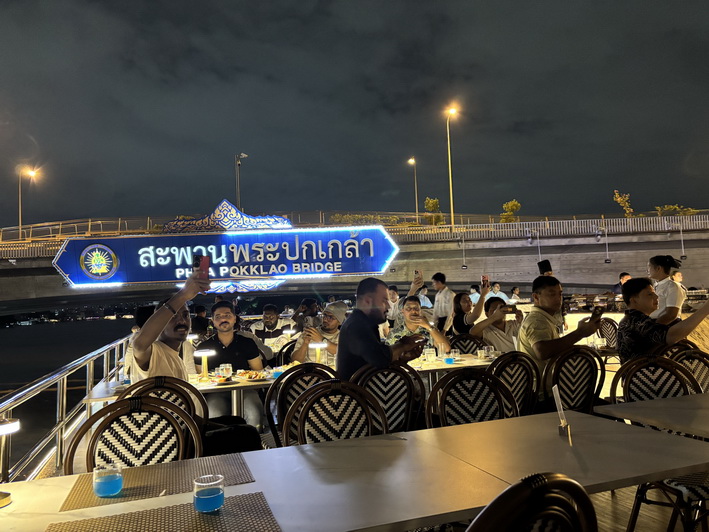 ระหว่างการล่องเรือ คุณจะได้ดื่มด่ำกับบทเพลงเพราะๆ ทั้งไทยและสากล และชมการแสดงนาฏศิลป์ไทยถึง 2 ชุดเต็ม ตลอดการเดินทางผ่านแลนด์มาร์กสำคัญริมแม่น้ำเจ้าพระยา เช่น วัดอรุณราชวราราม วัดพระแก้ว พระบรมมหาราชวัง และสะพานพระราม 8 ซึ่งสวยงามสะกดทุกสายตา