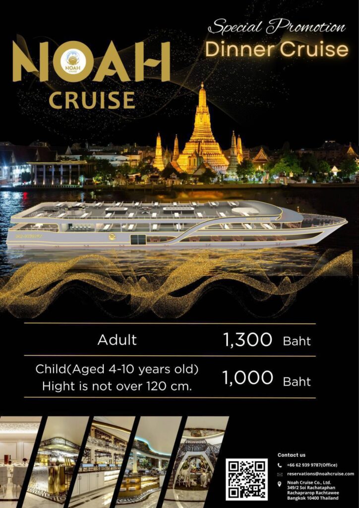 นอกจากรอบดินเนอร์แล้ว โนอาห์ ครูซ ยังมีบริการจัดทริปไหว้พระกลางวัน จัดงานแต่งงาน งานอีเวนต์ คอนเสิร์ต หรือปาร์ตี้ส่วนตัวได้ครบวงจร