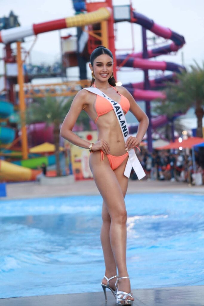 รันเวย์สุดฮอตของการประกวด Miss Universe ครั้งที่ 74 เดือดระอุเมื่อเหล่าสาวงามจาก 120 ประเทศทั่วโลกร่วมเฉิดฉายชุดว่ายน้ำ หลากสีสันในงาน Swimsuit Fashion Show ณ โคลัมเบีย พิคเจอร์ส อควาเวิร์ส เมืองพัทยา จังหวัดชลบุรี โดยโชว์ครั้งนี้จัดขึ้นอย่างยิ่งใหญ่และเป็นเอกสิทธิ์เฉพาะสถานที่ พร้อมสร้างสีสันให้แฟน ๆ นางงามทั่วโลกได้ตื่นตาตื่นใจโคลัมเบีย พิคเจอร์ส อควาเวิร์ส ให้การต้อนรับผู้เข้าประกวดอย่างงดงามด้วย มาลัยผ้าลายไทย “Narada” อันเปี่ยมด้วยเสน่ห์และจิตวิญญาณแห่งความเป็นไทย สื่อถึงความหอมหวาน ความอบอุ่น และการต้อนรับด้วยหัวใจของคนไทย