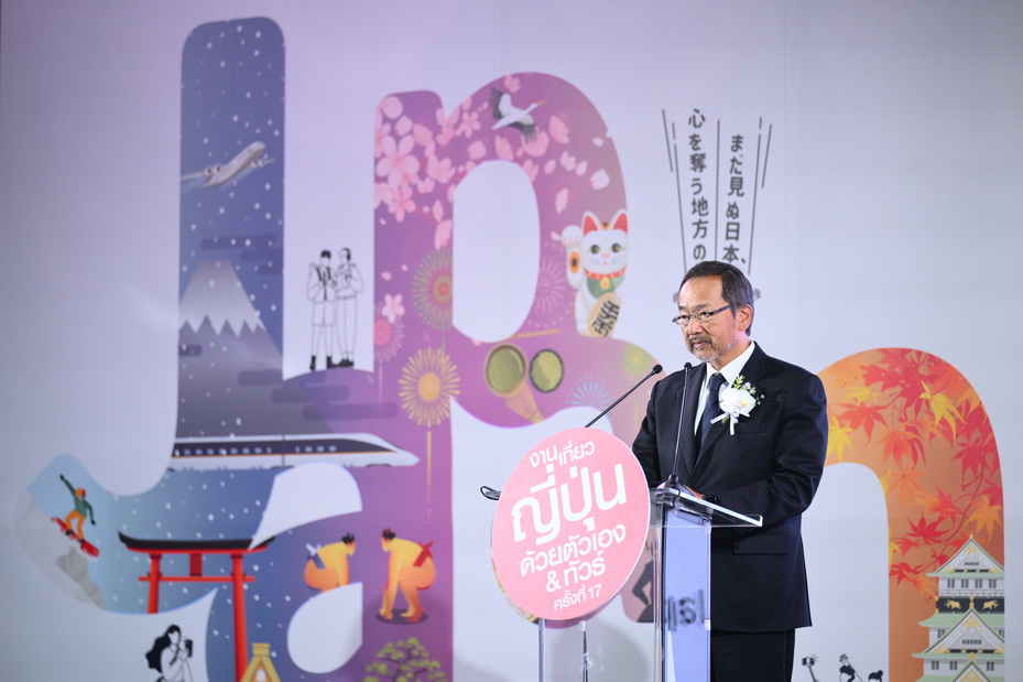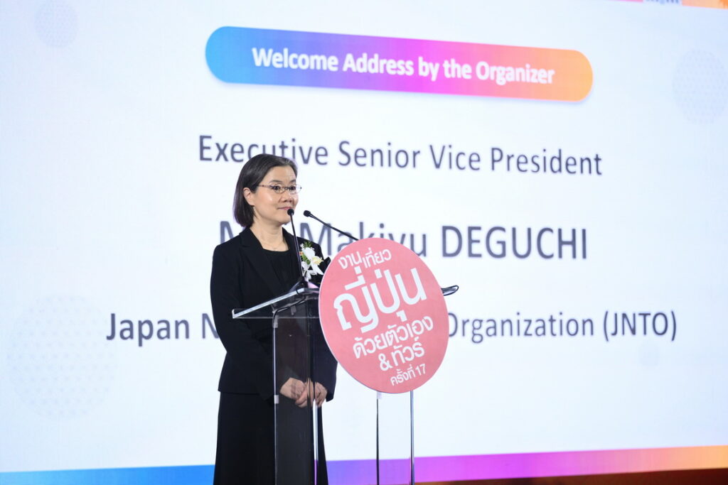 นางเดงุจิ มาคิยู รองประธานกรรมการบริหารอาวุโส องค์การส่งเสริมการท่องเที่ยวแห่งประเทศญี่ปุ่น (JNTO) ได้กล่าวเปิดงานว่า “ขอขอบคุณพันธมิตรจากทั้งประเทศไทยและญี่ปุ่นที่ได้ร่วมแรงร่วมใจกันอย่างยาวนาน ส่งผลให้นักท่องเที่ยวชาวไทยจำนวนมากได้เดินทางไปเยือนประเทศญี่ปุ่น เราหวังว่างานนี้จะทำให้ท่านได้ค้นพบ ‘ญี่ปุ่นมุมใหม่’ ของภูมิภาคต่างๆ และขอเชิญชวนให้ทุกท่านเดินทางไปเยือนญี่ปุ่น”