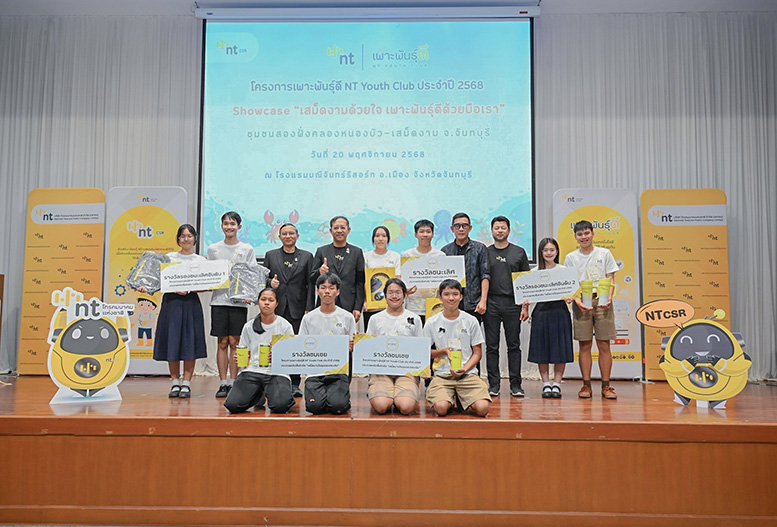 วันที่ 20 พฤศจิกายน 2568 ณ โรงแรมมณีจันทร์รีสอร์ท อำเภอเมือง จังหวัดจันทบุรี บริษัท โทรคมนาคมแห่งชาติ จำกัด (มหาชน) หรือ NT จัดพิธีเปิดกิจกรรม Showcase “เสม็ดงามด้วยใจ เพาะพันธุ์ดีด้วยมือเรา” ภายใต้โครงการ CSR เพาะพันธุ์ดี NT Youth Club ประจำปี 2568 ณ ชุมชนสองฝั่งคลองหนองบัว – เสม็ดงาม จังหวัดจันทบุรี จัดขึ้นเพื่อสร้างความต่อเนื่องในการพัฒนาชุมชนในโครงการเพาะพันธุ์ดี NT Youth Club ในพื้นที่จังหวัดจันทบุรี โดย นายมนต์สิทธิ์ ไพศาลธนวัฒน์ ผู้ว่าราชการจังหวัดจันทบุรี พร้อม นายปิยะ รัชตวรคุณ ผู้ช่วยกรรมการผู้จัดการใหญ่ กลุ่มขายและปฏิบัติการลูกค้าภาคตะวันออก ร่วมเป็นประธานในพิธี โดยมี นายวรชาติ อาลัยลักษณ์ ผู้จัดการฝ่ายขายและปฏิบัติการลูกค้า ภาคตะวันออกตอนบน ของ NT หน่วยงานภาครัฐและเอกชนในจังหวัดจันทบุรี คณะผู้บริหาร นักเรียนจากตัวแทนชุมชนภาคตะวันออก 11 แห่ง เข้าร่วมงาน และนำสินค้าของชุมชนร่วมออกร้าน พร้อมอบรมประกวดคลิปสั้นในกิจกรรม Showcase กิจกรรม CSR ปล่อยปูปลา ณ ป่าชายเลนเสม็ดงาม เพื่อปลูกจิตสำนึกเยาวชนในการอนุรักษ์ธรรมชาติ