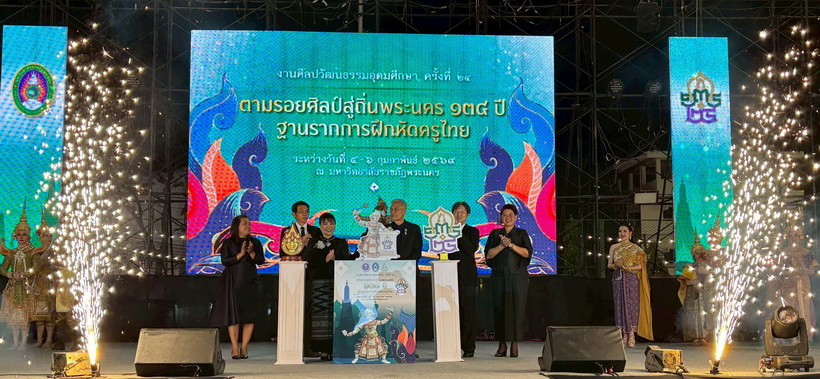 วันที่ 4 กุมภาพันธ์ 2569 – มหาวิทยาลัยราชภัฏพระนคร ถนนแจ้งวัฒนะ เขตบางเขน กรุงเทพฯ จัดพิธีเปิดอย่างยิ่งใหญ่ งานศิลปวัฒนธรรมอุดมศึกษา ครั้งที่ 24 ซึ่งกำหนดจัดขึ้นระหว่างวันที่ 4–6 กุมภาพันธ์ 2569 ณ มหาวิทยาลัยราชภัฏพระนคร โดยได้รับเกียรติจาก คุณวัฒนาโสภี สุขสอาด ที่ปรึกษาด้านยุทธศาสตร์และแผนอุดมศึกษา วิทยาศาสตร์ วิจัย และนวัตกรรม เป็นประธานในพิธีเปิด พร้อมด้วย รองศาสตราจารย์ ดร.เปรื่อง กิจรัตน์ภร รักษาราชการแทนอธิการบดีมหาวิทยาลัยราชภัฏพระนคร , รองศาสตราจารย์ขจิตพรรณ อมรปาน รองอธิการบดีฝ่ายกิจการนักศึกษาและศิลปวัฒนธรรม,ผู้ช่วยศาสตราจารย์ ดร.กัญณภัทร นิธิศวราภากุล ผู้อำนวยการสำนักศิลปะและวัฒนธรรม ,รองศาสตราจารย์ ดร.อนันตกุล อินทรผดุง ผู้อำนวยการสถาบันวิจัยและพัฒนา ,คณะผู้บริหารจากสถาบันอุดมศึกษาทั่วประเทศ คณาจารย์ และผู้มีเกียรติร่วมงานอย่างคับคั่ง โดยมี คุณเข้ม – มณฑล วงษ์ประดิษฐ์ และ คุณจิวเวลรี่ – ภัทริยา โสภณ เป็นพิธีกรภายในงาน