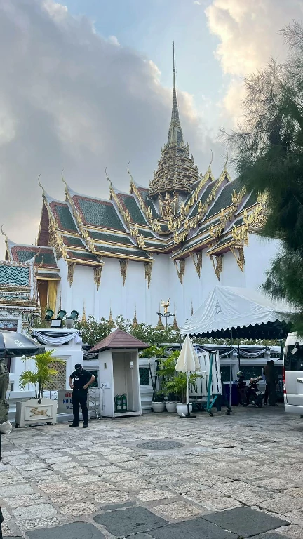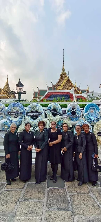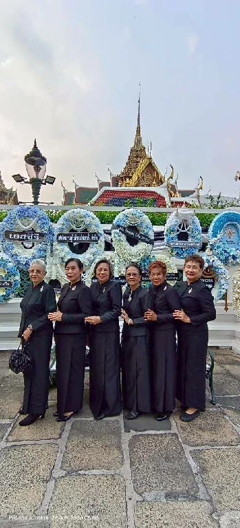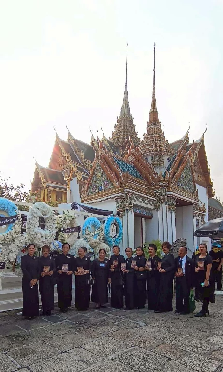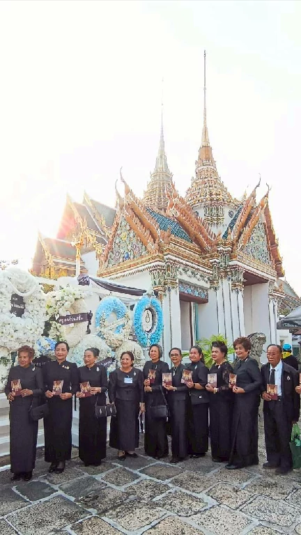 คณะชมรมฯ พร้อมใจกันแต่งกายชุดสุภาพสีดำ เดินทางไปยัง พระที่นั่งดุสิตมหาปราสาท ภายในพระบรมมหาราชวัง ซึ่งเป็นสถานที่ประกอบพระราชพิธีสำคัญตามโบราณราชประเพณี ท่ามกลางการดูแลอำนวยความสะดวกอย่างใกล้ชิดจากเจ้าหน้าที่สำนักพระราชวัง