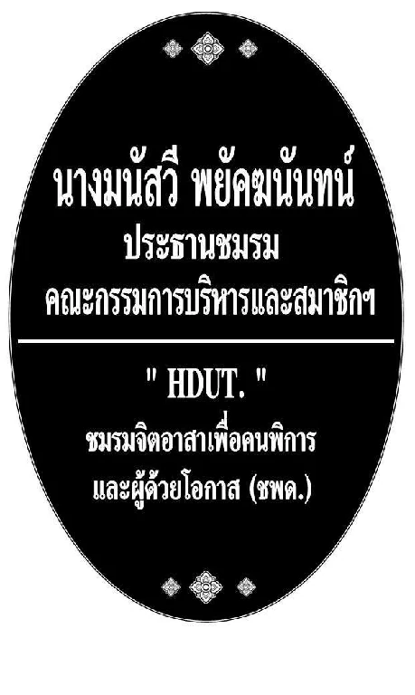 • ประธาน : ชมรม จิตอาสาเพื่อคนพิการและผู้ด้อยโอกาส (ชพด.) : “HDUT.”