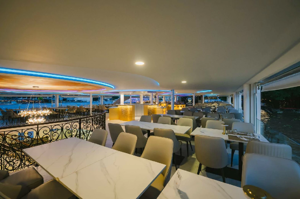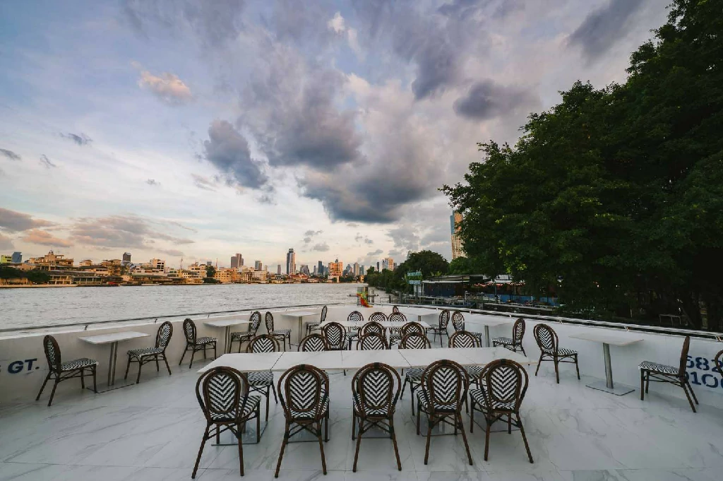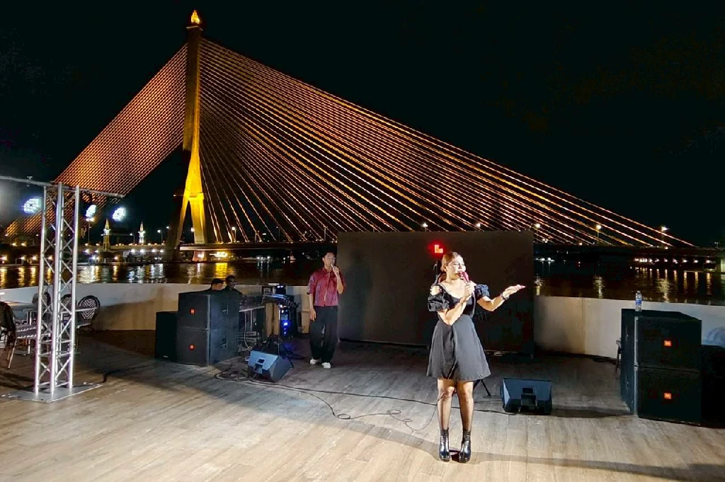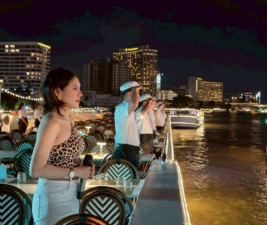 พื้นที่เปิดโล่งชั้นบนสุด เพลิดเพลินไปกับการชมทัศนียภาพของแม่น้ำเจ้าพระยาและแสงไฟระยิบระยับแบบ 360 องศาพร้อมฟังเพลงฮิตติดหูโดยนักร้องเสียงดี สลับกับการชมการแสดงนาฏศิลป์ไทย