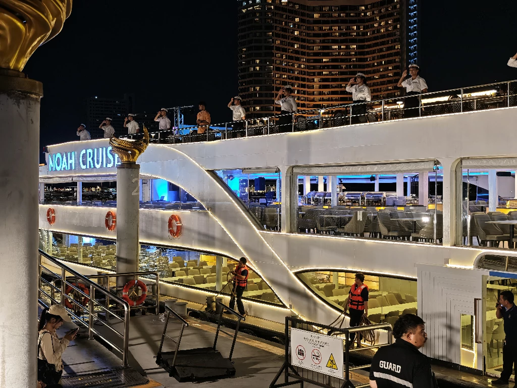19.45 น.โนอาห์ ครูซเข้าเทียบรับบริเวณท่าเรือที่ 2 ไอคอนสยาม
