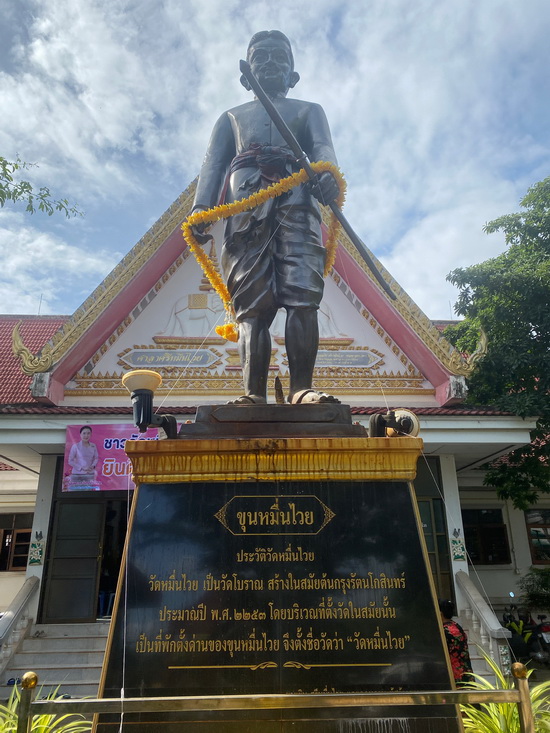 วัดหมื่นไวย สร้างขึ้นตั้งแต่สมัยอยุธยา พระประธานเป็นปางป่าเลไลย์ปูนปั้นลงรักปิดทอง ส่วนอิฐที่ใช้ก่อสร้างฐานที่เป็นฐานโค้งสำเภาเรือ และผนังโบสถ์เป็นอิฐก้อนใหญ่แบบเดียวกับอิฐที่ใช้ก่อสร้างกำแพงเมืองเก่าโคราชตำบลหมื่นไวย ด้านหลังองค์พระประธานประดิษฐาน “ก้อนหินพระเกศแก้วจุฬามณี” กราบขอพรให้ประสบผลสำเร็จได้ทุกเรื่องตามจิตอธิษฐาน แต่มีสิ่งที่น่าสนใจอยู่คือ โบสถ์เก่ากลางน้ำ อายุ 300 ปี